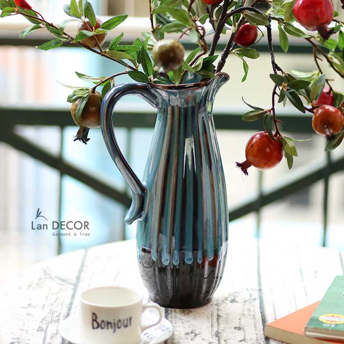 Thông tin sản phẩm: Bình gốm gốm giọt nước có quai xanh lam - BG461