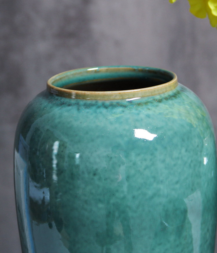 Bình gốm xanh ngọc men hỏa biến, cao 27cm - BG219