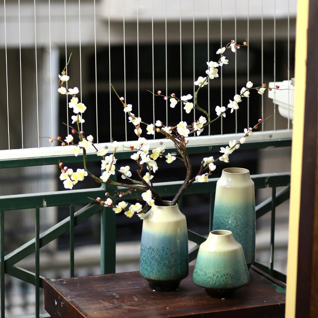 - Giá sản phẩm gồm bình sứ (cao 20cm) và cành đào trắng.