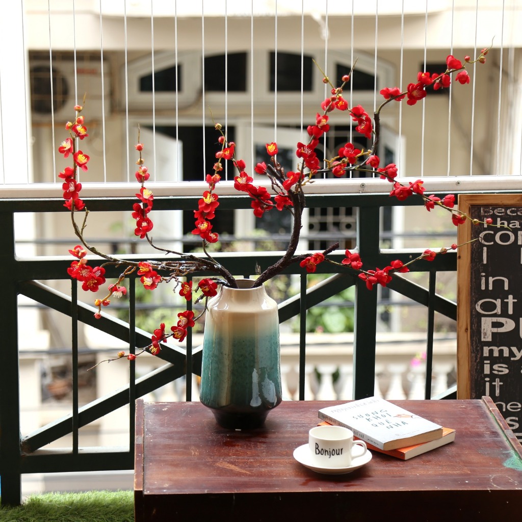 - Giá sản phẩm gồm 1 bình sứ(cao 26cm, đường kính 16cm) và cành đào đỏ.