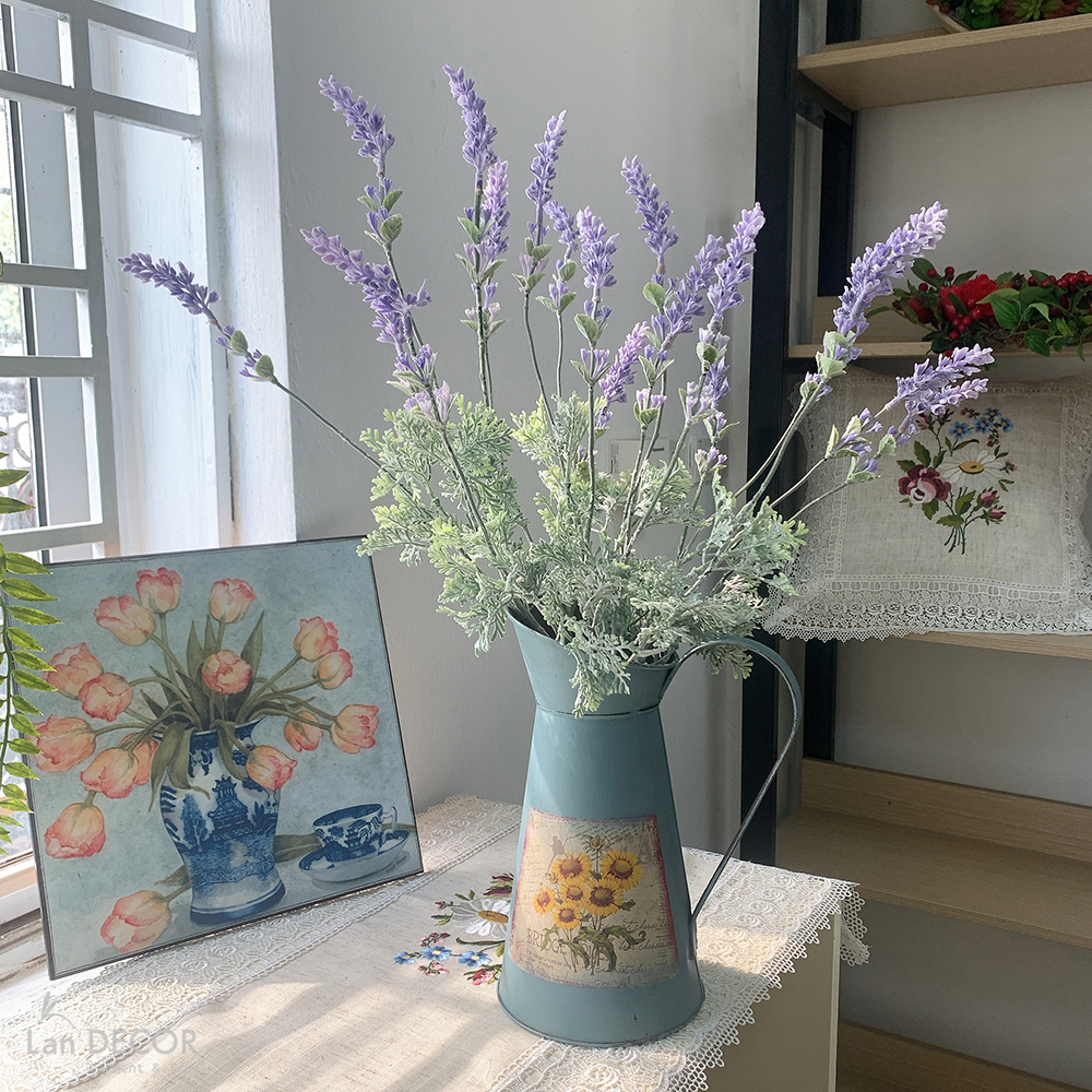 - Giá sản phẩm đã bao gồm cành hoa lavender và bình thiếc