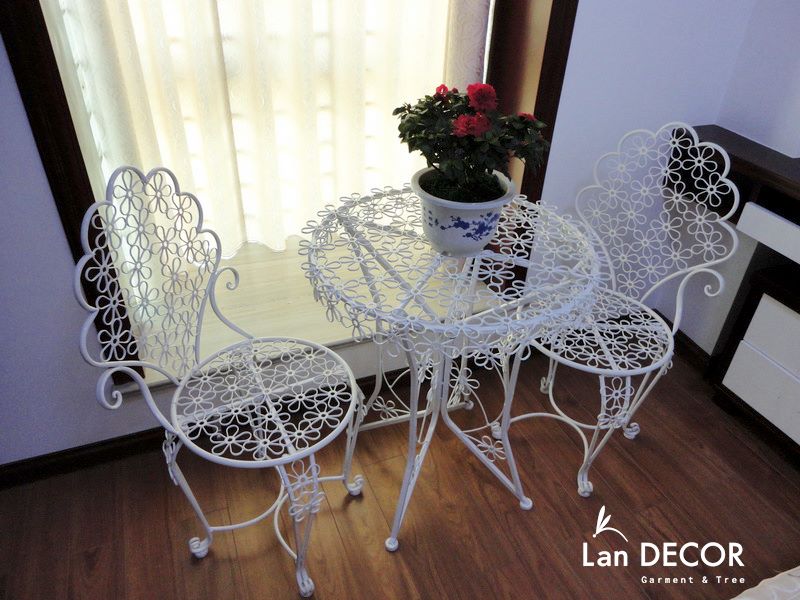 Thoát khỏi vẻ đơn điệu với những hoạ tiết rối mắt truyền thống, bộ bàn ghế sắt ngoài trời của Lan Decor mang một vẻ khác biệt nhờ sự tinh tế, mềm mại và vô cùng sang trọng.
