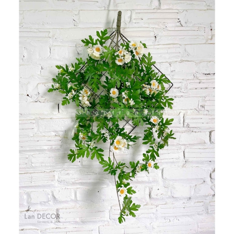 Hoa giả - Cành hoa Dã Quỳ trang trí tiểu cảnh, bồn hoa, giỏ treo decor nhà cửa LanDecor 90cm (Trắng/vàng) - HC1097