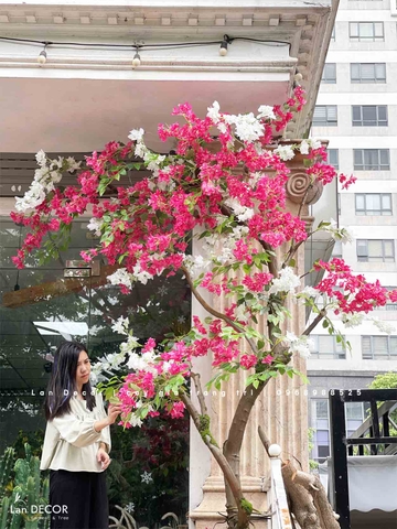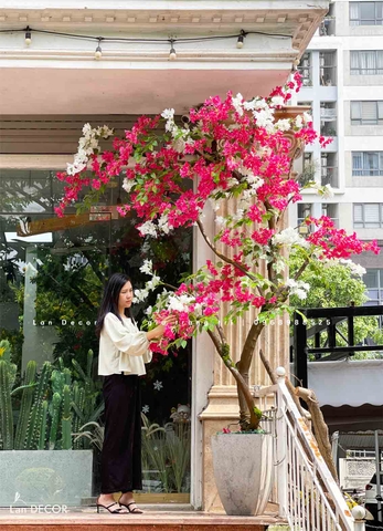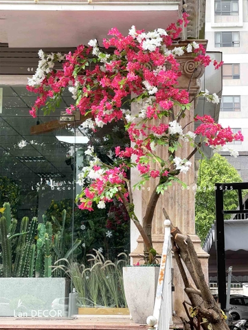 Chậu cây hoa giấy đẹp rạng rỡ được Lan Decor thiết kế tự nhiên, bắt mắt