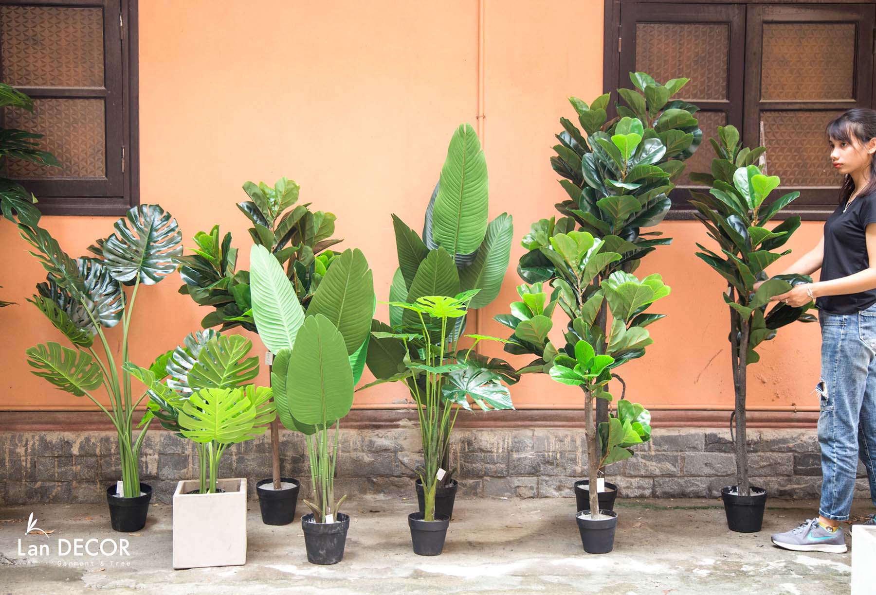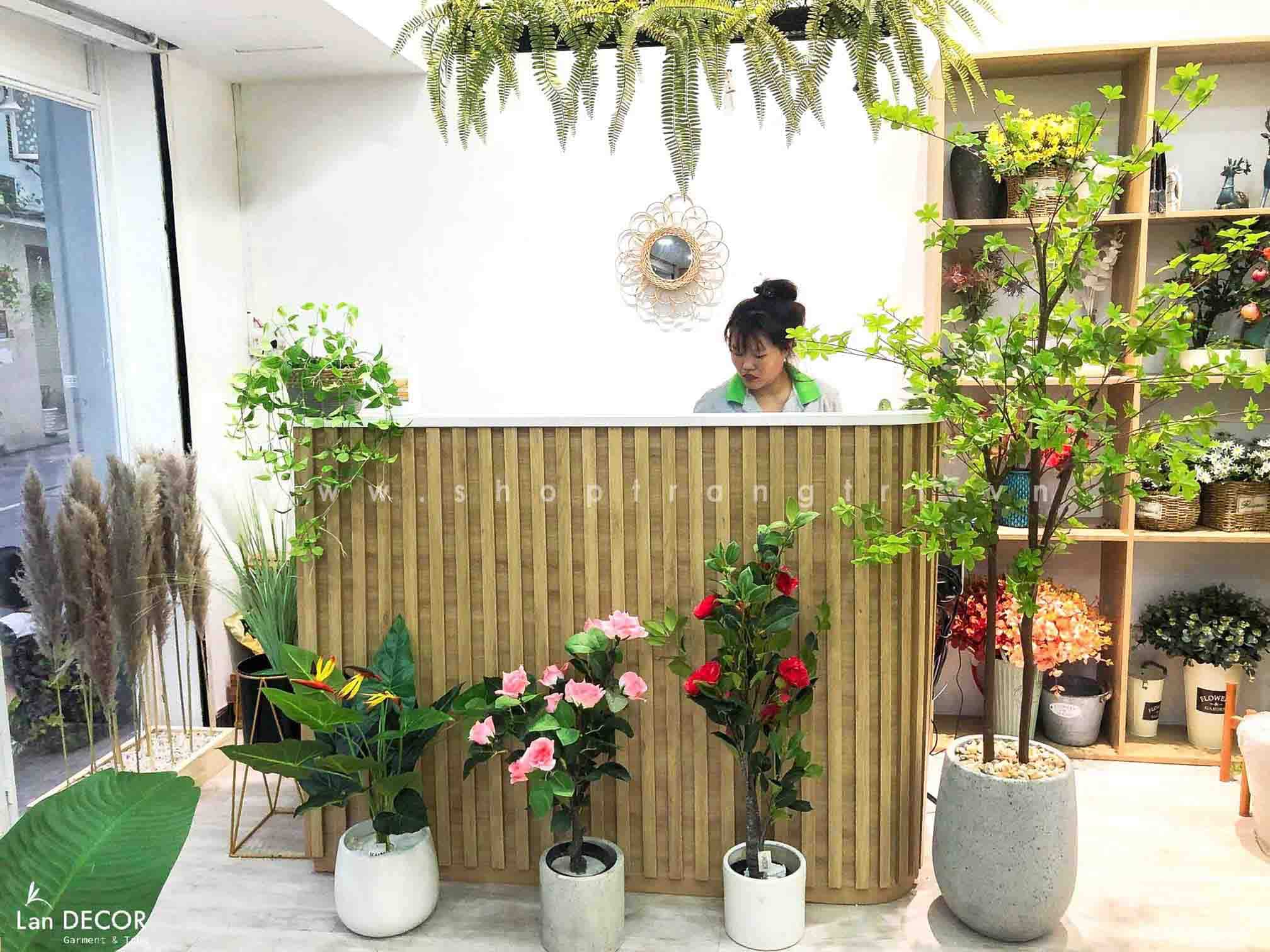 - Chất liệu: chủ yếu được làm từ các sợi tổng hợp có kết cấu bền đẹp, mang lại cảm giác chân thực như cây thật.