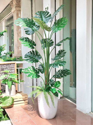- Cây lá xẻ hay còn gọi là cây Monstera với vẻ đẹp kinh điển của những chiếc lá xẻ hình trái tim tròn trịa và được rất nhiều người yêu thích.