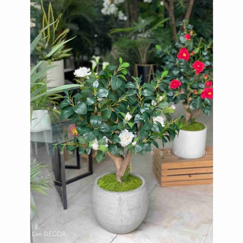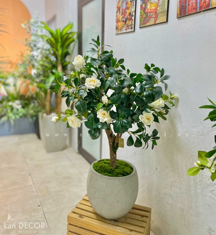 Cây hoa trà giả tạo điểm nhấn không gian ấn tượng
