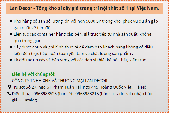 Cửa hàng trưng bày sản phẩm cây trang trí Lan Decor