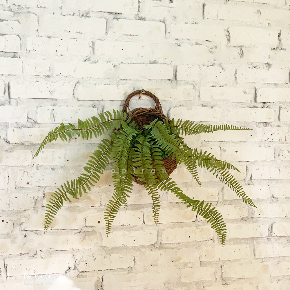 Giỏ dương xỉ treo tường được phối theo phong cách hiện đại từ những người thợ có tay nghề của LanDecor. Cánh dương xỉ tự nhiên như thật mang vẻ đẹp của thiên nhiên mang đến cảm giác chân thật và sống động cho không gian.