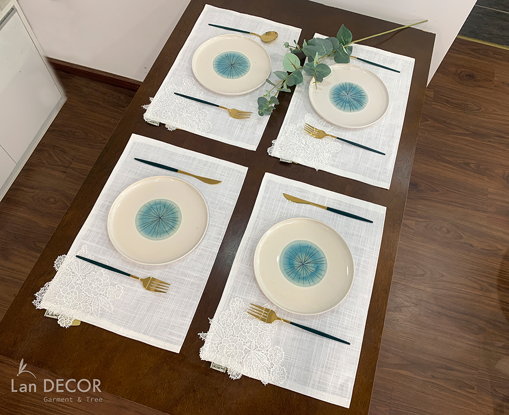 Khăn lót bàn ăn thích hợp dùng để kê lót bát đĩa bàn ăn để tạo sự trang trọng và bắt mắt, có thể dùng để chụp đồ ăn vô cùng độc đáo.