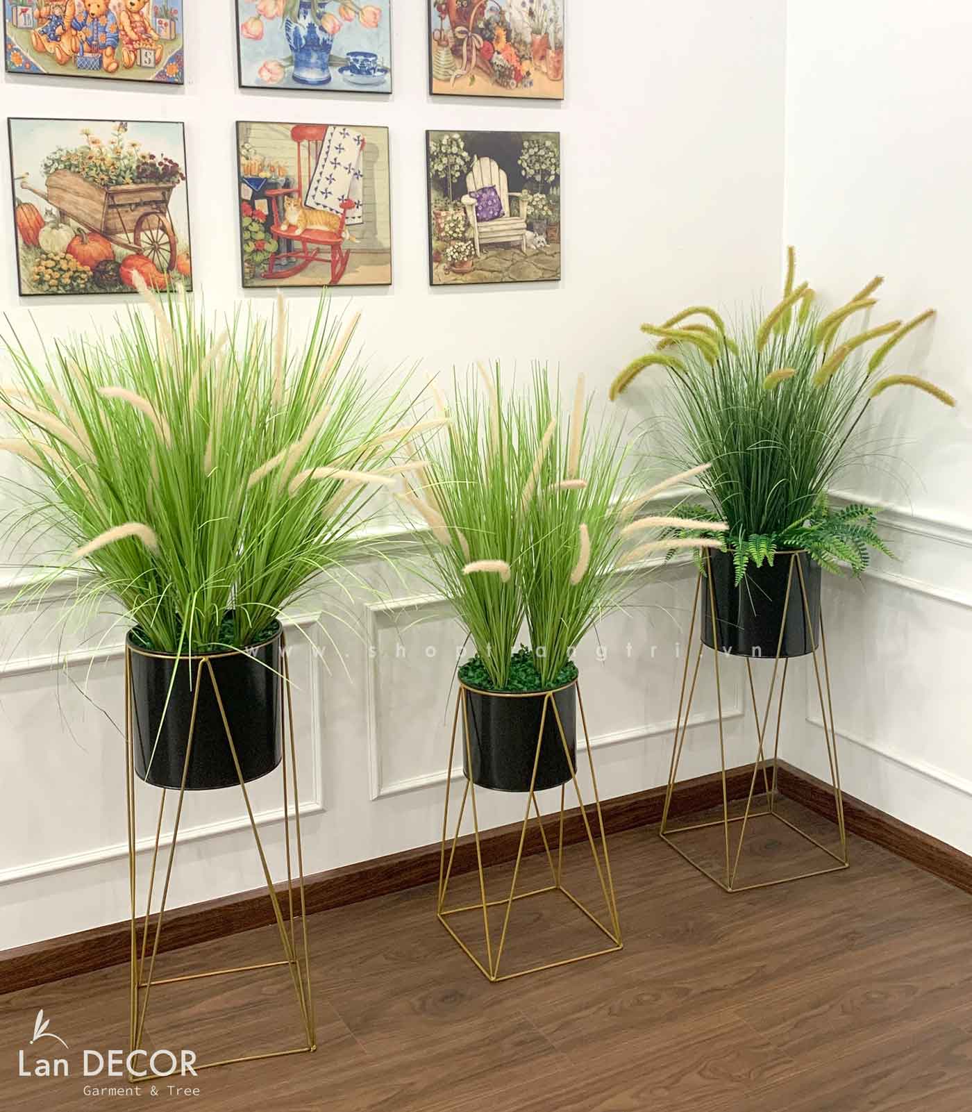 Chậu cỏ lau giả trang trí