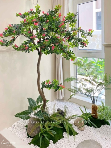 Tiểu cảnh cây đỗ quyên giả thiết kế Lan Decor, trang trí cửa hiệu, quán cafe, decor ban công căn hộ,...mang thiên nhiên vào không gian, tạo cảm giác thư thái.