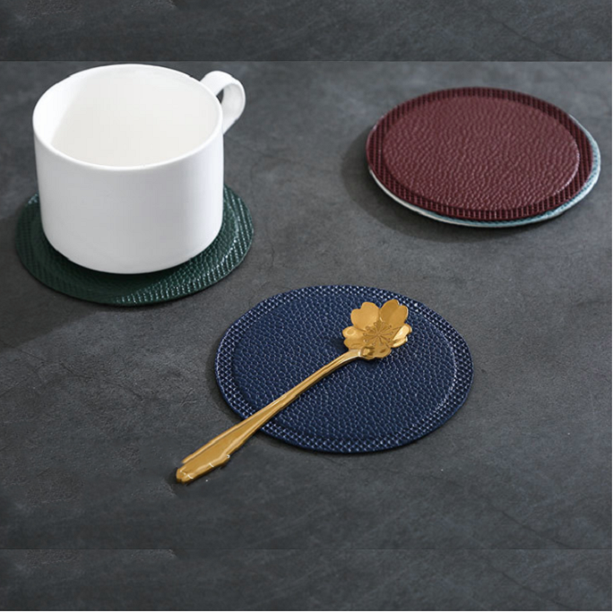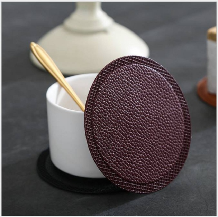 TL004 - Tấm lót cốc lớn Kích thước: đường kính 15 cm Chất liệu: da